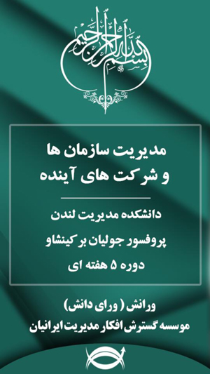 درک تحولات مدیریت در جهان امروز بیش از پیش اهمیت یافته است. سازمان ها و شرکت هائی که از همراهی با این روند باز مانند حذف خواهند شد. هدف از این دوره ارائه چارچوبی برای درک اصول مدیریت سنتی و مدرن و آشنائی مدیران با آخرین نظریه های مدیریت در عرصه جهانی است. این دوره توسط جولیان برکینشاو پروفسور به نام دانشکده مدیریت لندن و از اساتید برجسته مدیریت جهان ارائه می شود. آموزه های این دوره برای تمام افرادی که در هر سطح و در هر زمینه ای به مدیریت اشتغال دارند لازم و ضروری است.